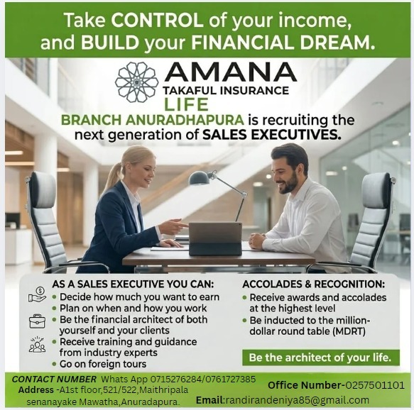 Full time @AMANA TAKAFUL INSURANCE ANURADHAPURA BRANCH in Marketing, Sales & Business Development